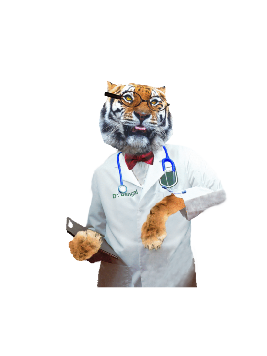 Before I became a doctor, I was a tough jungle cat who got into a lot of fights and bullied others. I was king of the jungle until one day I stepped in a trap. OUCH! After that, I turned my life around. I went to school and studied really hard to become a doctor. Now I help cats heal from illnesses and traumas.